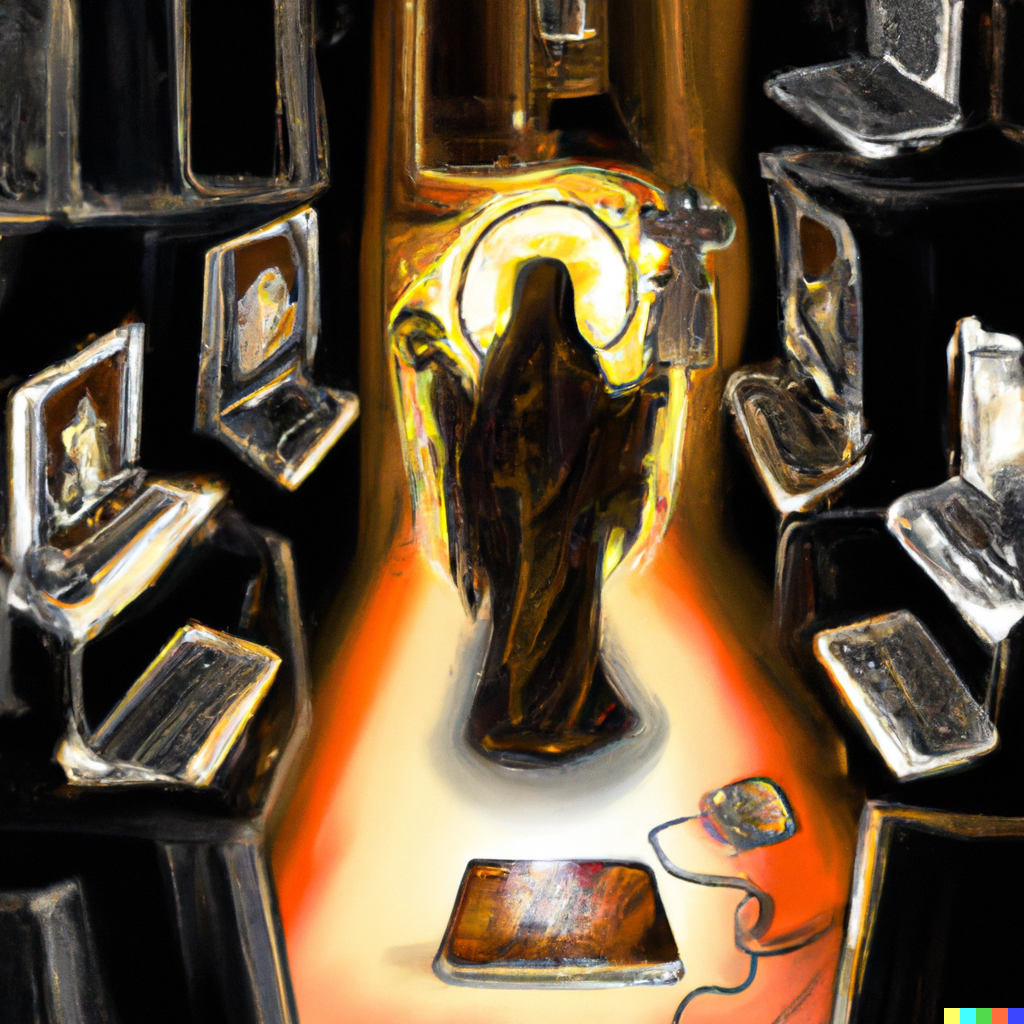 DALL·E 2022-08-17 08.30.13 - God descending on the holy computers on an altar in the digital age. Digital art.png