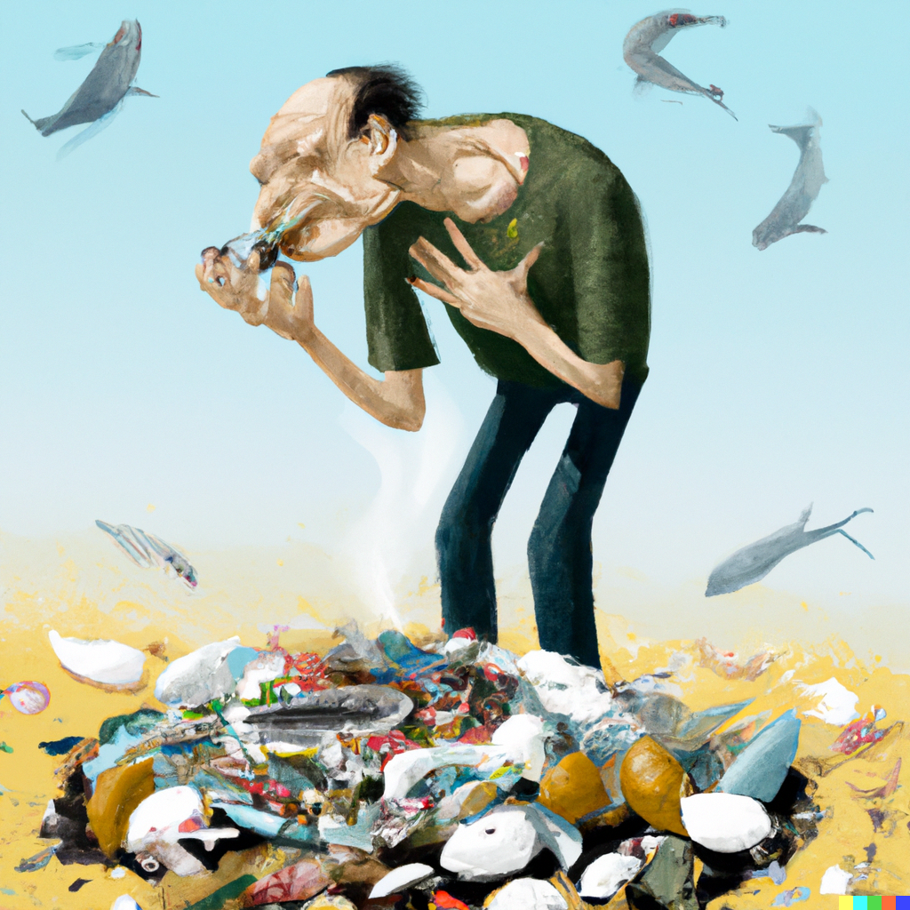 DALL·E 2022-08-19 11.11.14 - a man smelling a disgusting pile of garbage including rotting fish and rotting eggs, digital art.png
